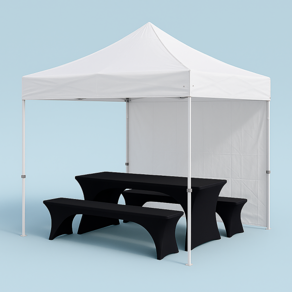 Ob Gartenfest oder Firmenevent – unsere Bierzeltgarnitur mit Pavillon ist flexibel einsetzbar und schnell aufgebaut. Robustes Holz, optional mit edlen Hussen, trifft auf wetterfesten 3×3 m Faltpavillon – die praktische Lösung für Sonne und Regen. Ideal für Feiern jeder Art.
